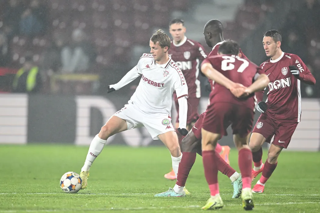 Timotej Jambor si Alin Razvan Fica in meciul de fotbal dintre FC CFR 1907 Cluj si FC Rapid Bucuresti, contand pentru Superliga Superbet, desfasurat pe Stadionul Dr.Constantin Radulescu din Cluj-Napoca, duminica 23 noiembrie 2025. © FOTO:Flaviu Buboi/SPORT PICTURES