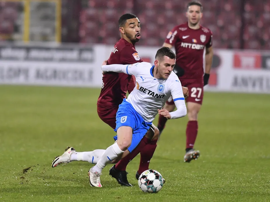 Yacouba Sylla si Alexandru Cicaldau in meciul de fotbal dintre CFR Cluj si Universitatea Craiova, contand pentru Liga 1 Casa Pariurilor, desfasurat fara spectatori pe Stadionul Dr. Constantin Radulescu din Cluj Napoca, marti 22 decembrie 2020. © FOTO:Razvan Pasarica/SPORT PICTURES
