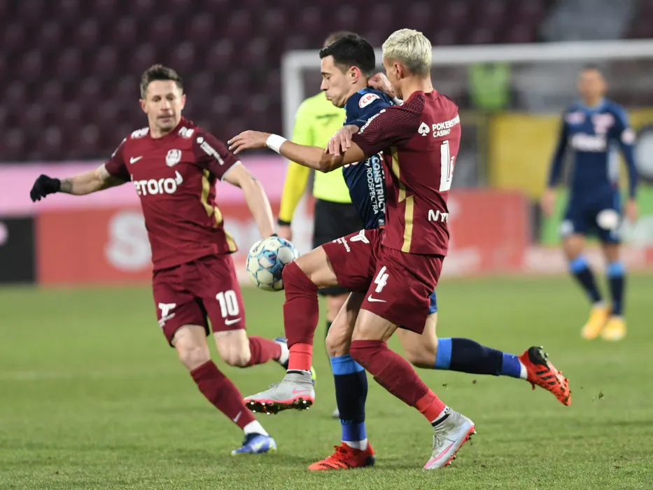 Cristian Marian Manea si Ciprian Ioan Deac in meciul de fotbal dintre CFR Cluj si UTA Arad, contand pentru Liga 1 Casa Pariurilor, desfasurat pe Stadionul Dr. Constantin Radulescu din Cluj Napoca, marti 08 februarie 2022. © FOTO:Flaviu Buboi/SPORT PICTURES