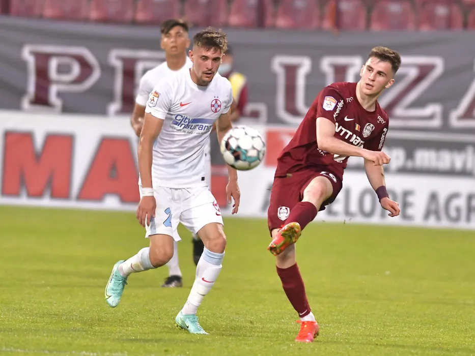 Sorin Danut Serban si Mihai Adrian Gidea in meciul de fotbal dintre CFR Cluj si FCSB, contand pentru Play-off-ul Ligii 1 Casa Pariurilor, desfasurat pe Stadionul Dr. Constantin Radulescu din Cluj Napoca, marti 25 mai 2021. © FOTO:Razvan Pasarica/SPORT PICTURES