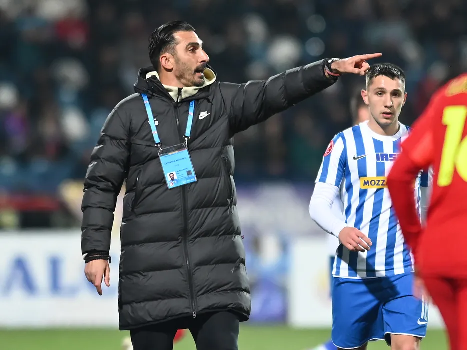 Elias Charalambous reactioneaza alaturi de Stefan Stefanovici in meciul de fotbal dintre Politehnica Iasi si FCSB, din cadrul Superligii Superbet, desfasurat pe Stadionul Emil Alexandrescu din Iasi, marti 19 decembrie 2023. © FOTO:Razvan Pasarica/SPORT PICTURES