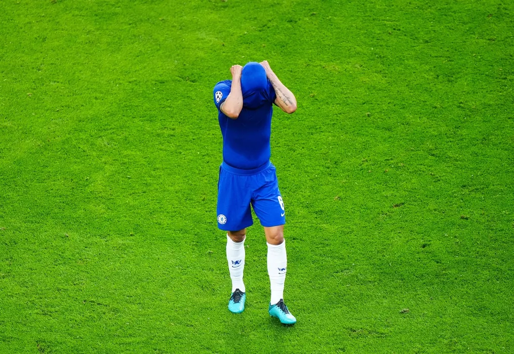 Thiago Silva of Chelsea looks dejected as he goes off with an injury