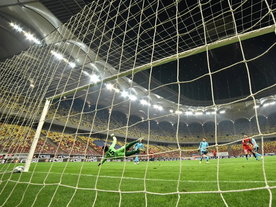 Faza golului marcat de catre Darius Dumitru Olaru in meciul de fotbal dintre FCSB si Chindia Targoviste, contand pentru Liga 1 Casa Pariurilor, desfasurat fara spectatori pe Arena Nationala din Bucuresti, sambata 20 februarie 2021. © FOTO:Razvan Pasarica/SPORT PICTURES