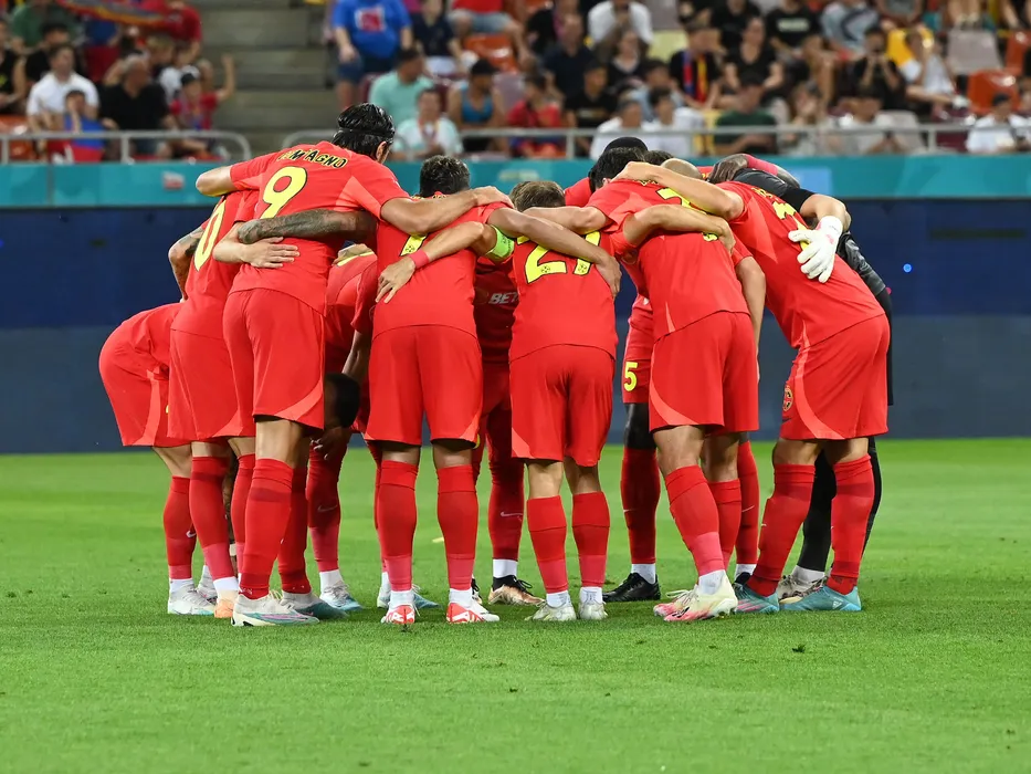 Fotbalistii stelisti se incurajeaza inaintea meciului de fotbal dintre FCSB si Politehnica Iasi, din cadrul Superligii Superbet, desfasurat pe Arena Nationala din Bucuresti, duminica 20 august 2023. © FOTO:Razvan Pasarica/SPORT PICTURES