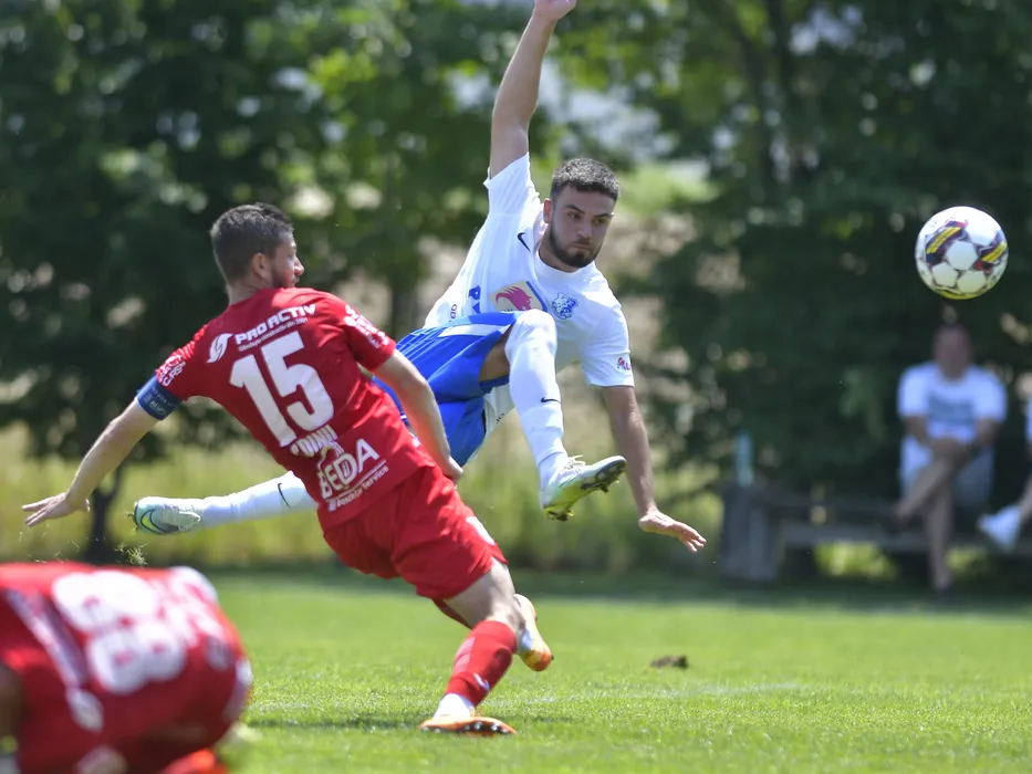 Cornel Dinu si Ionut Cojocaru in meciul amical de fotbal dintre Farul Constanta si Chindia Targoviste, desfasurat la Baza Campo Verde din Ghimbav, sambata 2 iulie 2022. © FOTO:Razvan Pasarica/SPORT PICTURES