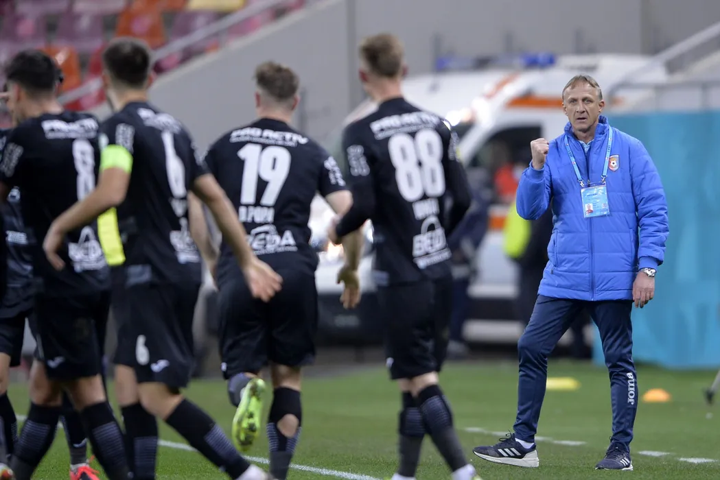 Emil Sandoi, antrenorul echipei Chindia Targoviste, reactioneaza in timpul meciului de fotbal contra formatiei FCSB din etapa a XXVI-a a Ligii 1, disputat pe Arena Nationala din Bucuresti, duminica, 13 februarie 2022. ALEXANDRU DOBRE / MEDIAFAX FOTO