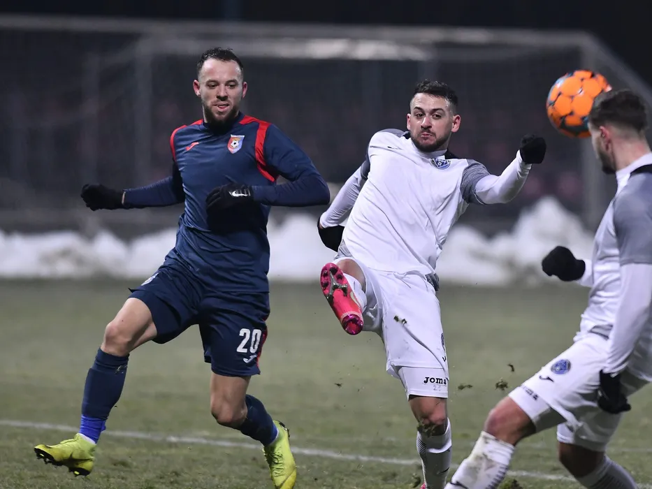 Cristian Daniel Negut si Mihai Dobrescu in meciul de fotbal dintre Chindia Targoviste si Academica Clinceni, contand pentru Liga 1 Casa Pariurilor, desfasurat pe Stadionul central al Centrului National de Fotbal de la Buftea, vineri 22 ianuarie 2021. © FOTO:Razvan Pasarica/SPORT PICTURES