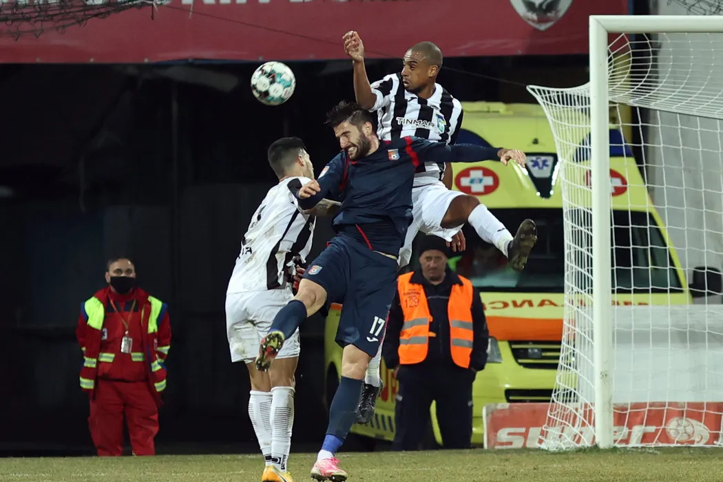 Meciul de fotbal dintre Chindia Targoviste si Astra Giurgiu (echipament alb/negru) din etapa a XXVII-a a Ligii 1, disputat pe stadionul Gloria din Buzau, duminica, 14 martie 2021. GEORGE FILIP / MEDIAFAX FOTO