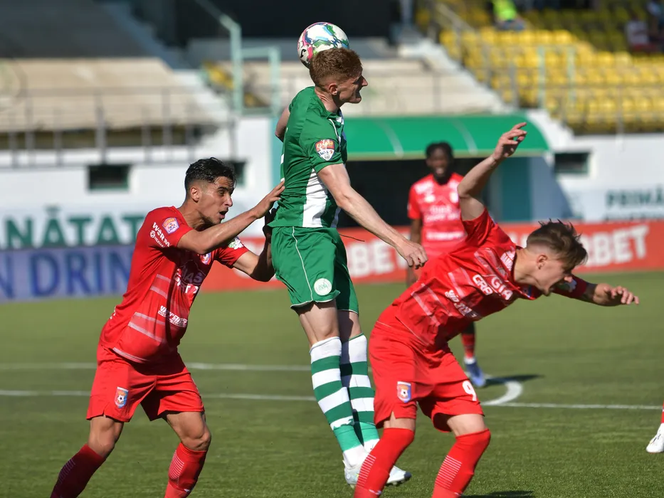Stjepan Plazonja si Tiberiu Ionut Capusa in meciul de fotbal dintre Concordia Chiajna si Chindia Targoviste, contand pentru Barajul pentru Liga 1 Casa Pariurilor, desfasurat pe Stadionul comunal Concordia din Chiajna, sambata 21 mai 2022. © FOTO:Razvan Pasarica/SPORT PICTURES