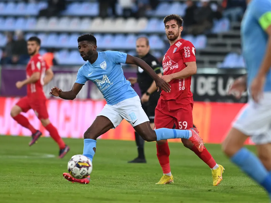 Helder Luis Lopes Vieira Tavares si Doru Popadiuc la meciul de fotbal dintre FC Voluntari si Chindia Targoviste, contand pentru Superliga Superbet, desfasurat pe Stadionul Anghel Iordanescu din Voluntari, sambata 22 octombrie 2022. © FOTO:Razvan Pasarica/SPORT PICTURES