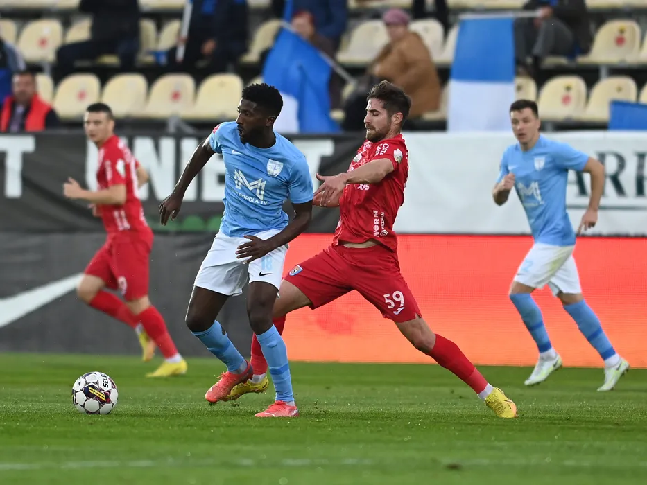 Helder Luis Lopes Vieira Tavares si Doru Popadiuc la meciul de fotbal dintre FC Voluntari si Chindia Targoviste, contand pentru Superliga Superbet, desfasurat pe Stadionul Anghel Iordanescu din Voluntari, sambata 22 octombrie 2022. © FOTO:Razvan Pasarica/SPORT PICTURES
