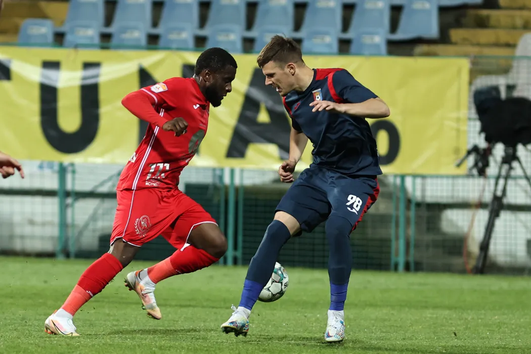 Meciul de fotbal Chindia Targoviste - Gaz Metan Medias din etapa a 6-a a play-out-ului Ligii 1, disputat pe stadionul Municipal din Buzau, marti, 4 mai 2021. GEORGE FILIP / MEDIAFAX FOTO