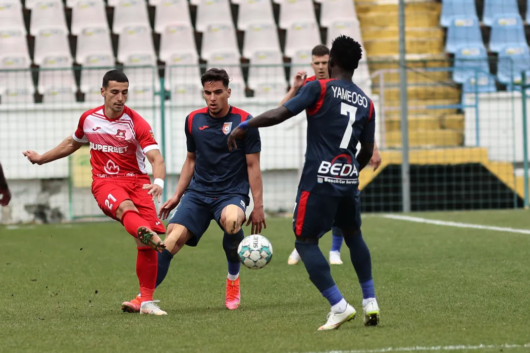 Meciul de fotbal Chindia Targoviste - AFC Hermannstadt din prima etapa a play-out-ului Ligii 1, disputat pe stadionul Municipal din Buzau, sambata, 17 aprilie 2021. GEORGE FILIP / MEDIAFAX FOTO