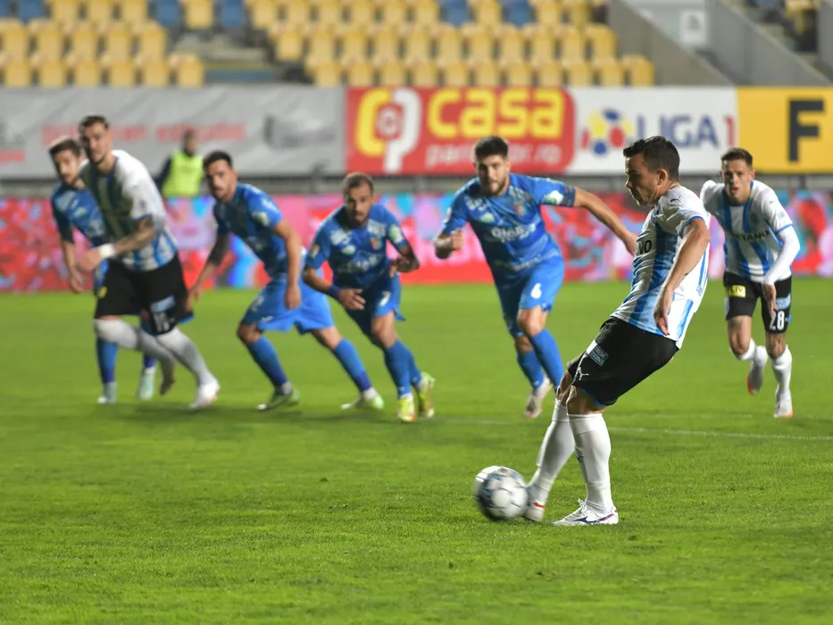 Dan Nicolae Nistor rateaza un penalty in meciul de fotbal dintre Chindia Targoviste si Universitatea Craiova, contand pentru Liga 1 Casa Pariurilor, desfasurat pe Stadionul Ilie Oana din Ploiesti, vineri 22 octombrie 2021. © FOTO:Razvan Pasarica/SPORT PICTURES