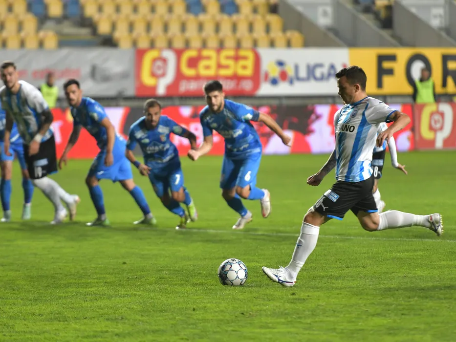 Dan Nicolae Nistor rateaza un penalty in meciul de fotbal dintre Chindia Targoviste si Universitatea Craiova, contand pentru Liga 1 Casa Pariurilor, desfasurat pe Stadionul Ilie Oana din Ploiesti, vineri 22 octombrie 2021. © FOTO:Razvan Pasarica/SPORT PICTURES