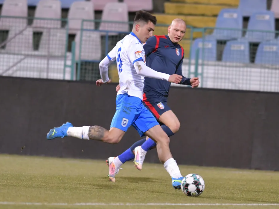 Stefan Marinel Vladoiu si Denis Constantin Dumitrascu in meciul de fotbal dintre Chindia Targoviste si Universitatea Craiova, contand pentru Liga 1 Casa Pariurilor, desfasurat pe Stadionul Gloria din Buzau, sambata 27 februarie 2021. © FOTO:Razvan Pasarica/SPORT PICTURES