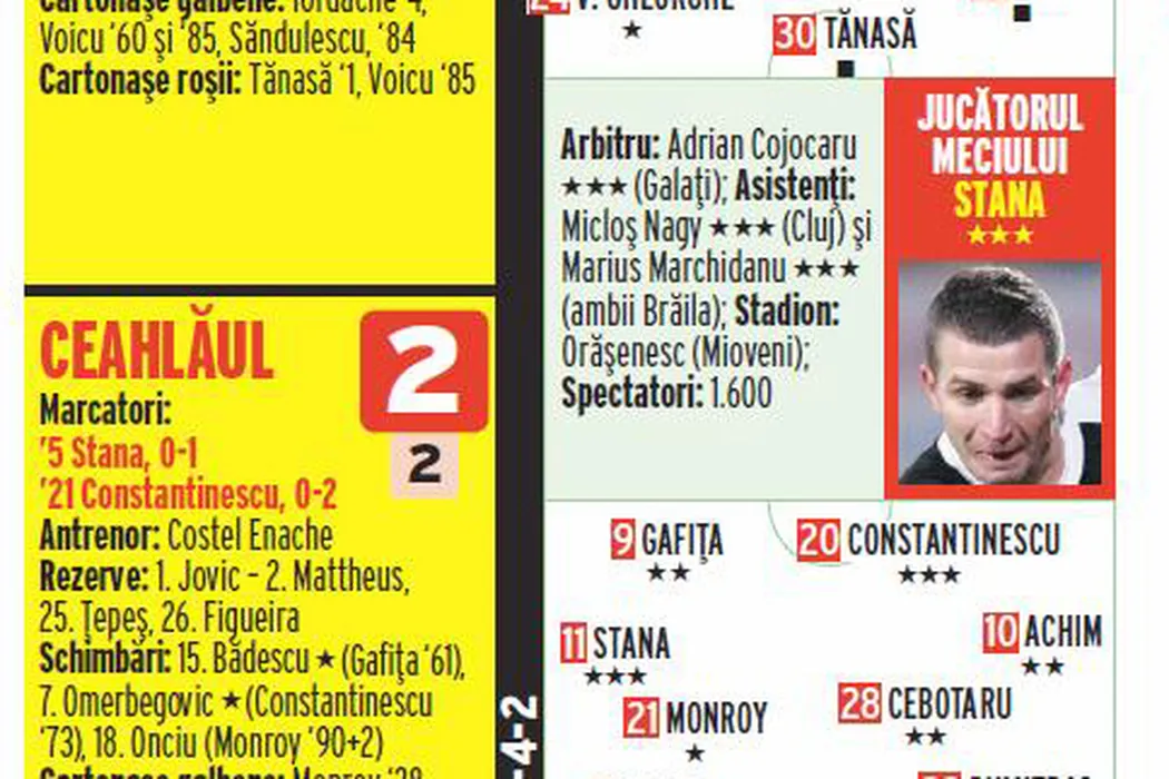 Chinul echipei lui ‘China’** Mioveni – Ceahlăul 1-2! Trupa lui „Lippi” a terminat meciul în 9