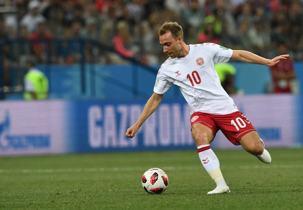 5571806 01.07.2018 Denmark’s Christian Eriksen controls a ball during the World Cup Round of 16 soccer match between Croatia and Denmark at the Nizhny Novgorod stadium, in Nizhny Novgorod, Russia, July 1, 2018. Grigoriy Sokolov / Sputnik/ Hepta / Sport Pictures
