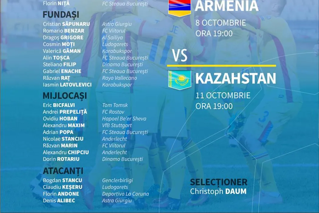 Christoph Daum a anunțat lotul pentru meciurile cu Armenia și Kazahstan. Niță, Latovlevici și Enache sunt pe listă