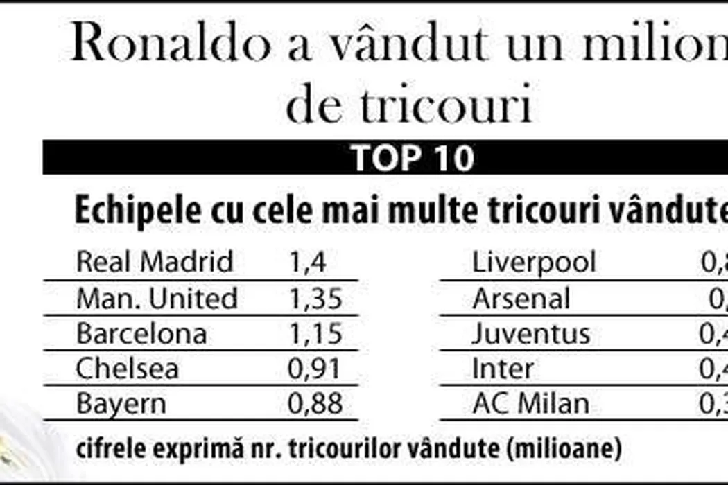 Cifre incredibile pentru Ronaldo. Portughezul a vândut mai multe tricouri în 2013 decât Bayern, Liverpool, Arsenal sau Juventus