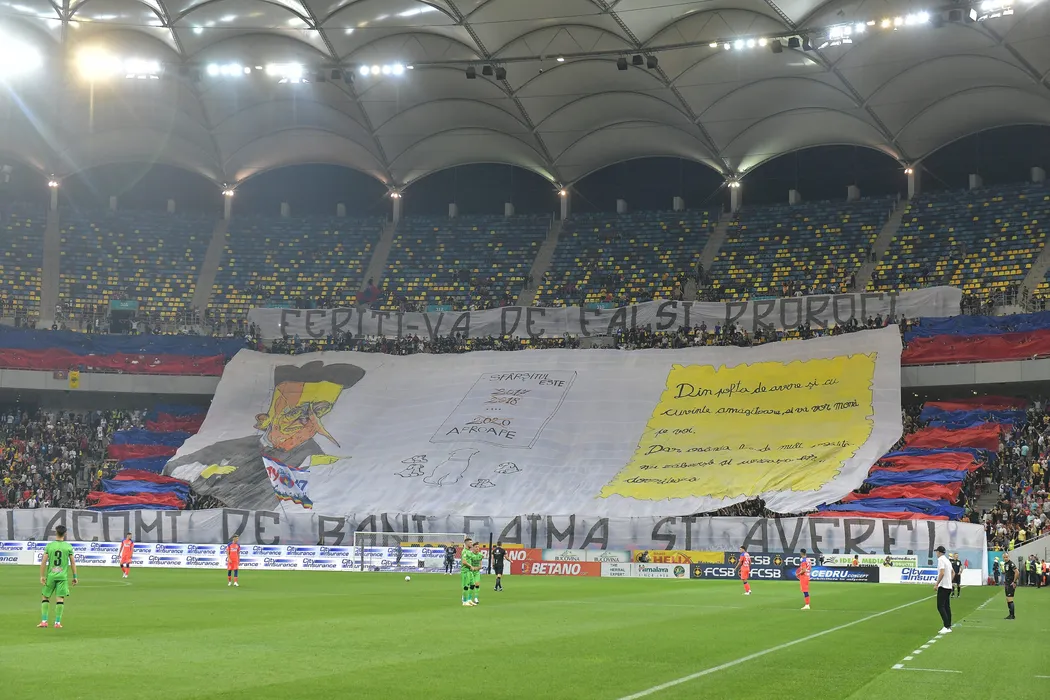 Coregrafie a galeriei steliste in meciul de fotbal dintre FCSB si Dinamo Bucuresti, contand pentru Liga 1 Casa Pariurilor, desfasurat pe Arena Nationala din Bucuresti, duminica 12 septembrie 2021. © FOTO:Razvan Pasarica/SPORT PICTURES