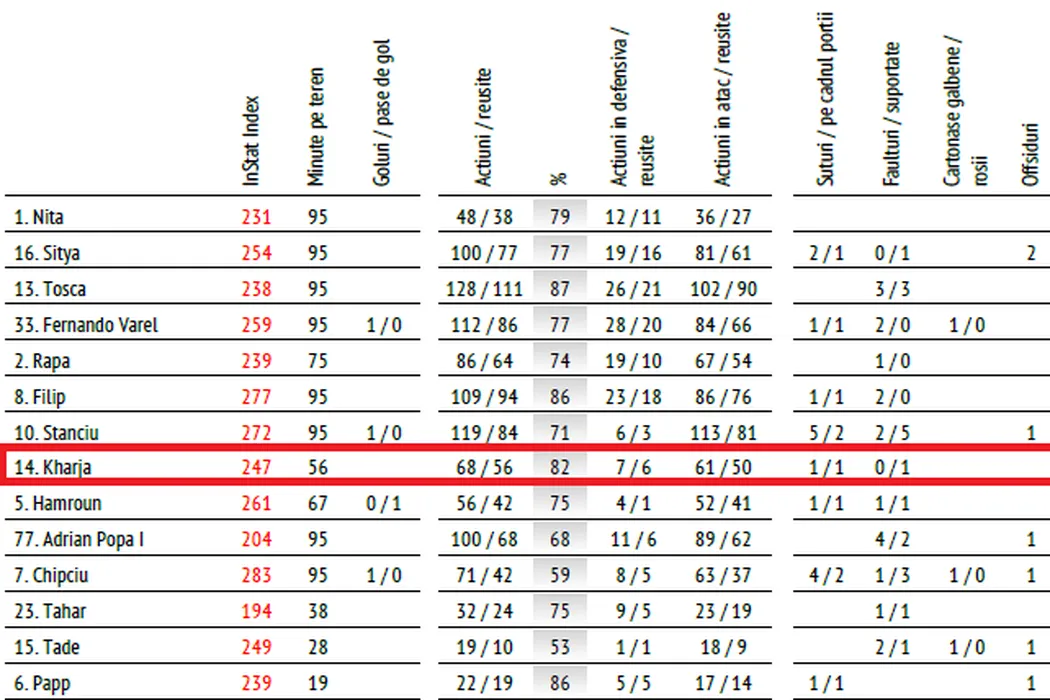 Cifrele lui Kharja la debut: marocanul a fost mijlocașul cu cel mai slab index InStat, după Adi Popa. Cine a fost cel mai bun jucător din meciul cu Chiajna