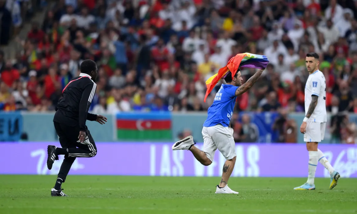 Cine e italianul Mario „Il Falco” Ferri, fanul care a intrat pe gazon cu steagul LGBT și mesajul „Salvați Ucraina” la Portugalia – Uruguay! Este recunoscut în Serie A pentru escapadele sale