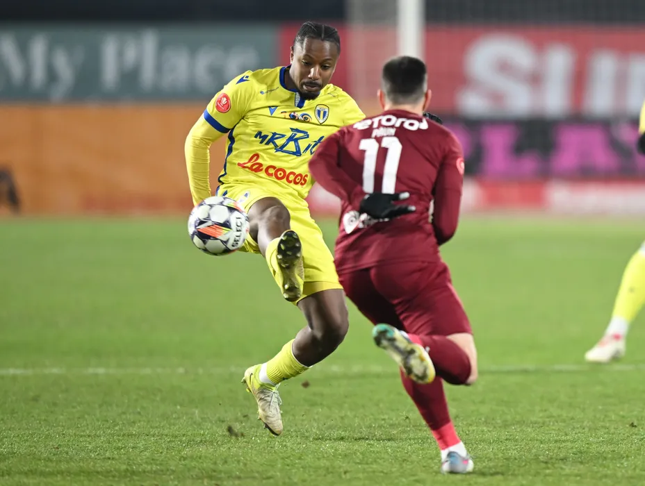 Tidiane Keita si Constantin Adrian Paun in meciul de fotbal dintre FC CFR 1907 Cluj si FC Petrolul Ploiesti, contand pentru Superliga Superbet, desfasurat pe Stadionul Dr.Constantin Radulescu din Cluj-Napoca, sambata 22 februarie 2025. © FOTO: Flaviu Buboi/SPORT PICTURES