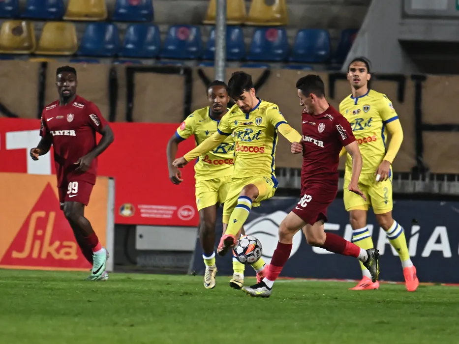 Tidiane Keita, Sergiu Cătălin Hanca si Alin Răzvan Fica in meciul de fotbal dintre Petrolul Ploiesti si CFR Cluj, din cadrul Superligii Superbet, desfasurat pe Stadionul Ilie Oana din Ploiesti, sambata 19 octombrie 2024. © FOTO:Razvan Pasarica/SPORT PICTURES