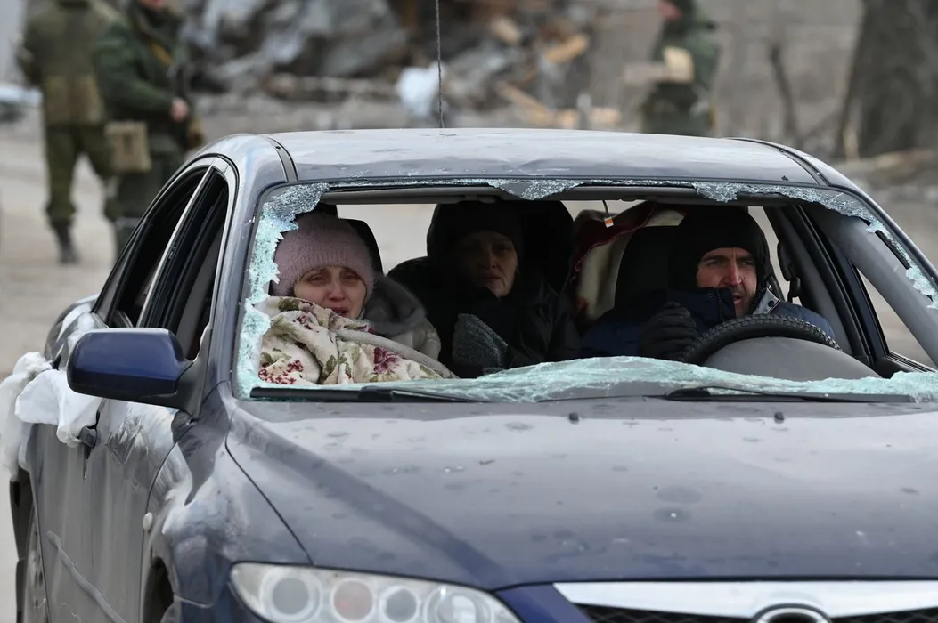 8142295 16.03.2022 Residents are seen through a broken car window as they leave Mariupol, Donetsk People's Republic.,Image: 671265391, License: Rights-managed, Restrictions: Editors' note: THIS IMAGE IS PROVIDED BY RUSSIAN STATE-OWNED AGENCY SPUTNIK., Model Release: no, Credit line: Profimedia