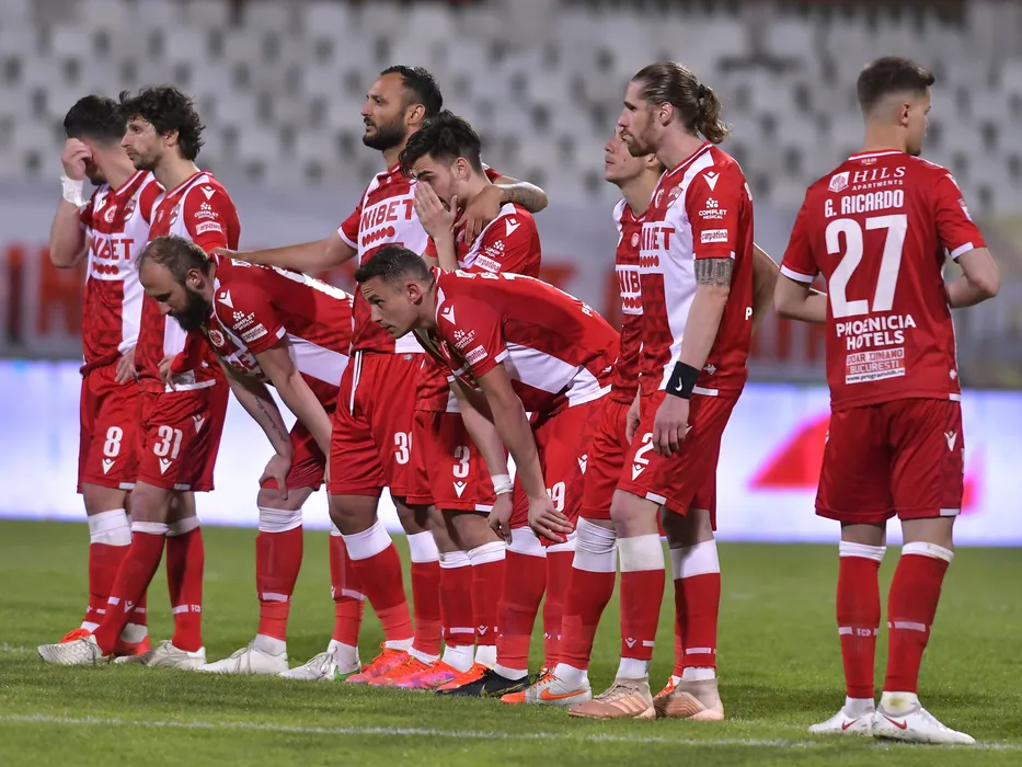 Fotbalistii dinamovisti Paul Viorel Anton, Diego Fabbrini, Ante Puljic, Andrei Cristian Blejdea,Florin Bejan, Gevaro Giomar Magno Nepomuceno, Andrei Radu, Redal Raul Albentosa si Ricardo Florin Grigore la executarea penaltyurilor in meciul de fotbal dintre Dinamo Bucuresti si Astra Giurgiu, contand pentru semifinala retur a Cupei Romaniei, desfasurat fara spectatori pe Stadionul Dinamo din Bucuresti, marti 11 mai 2021. © FOTO:Razvan Pasarica/SPORT PICTURES