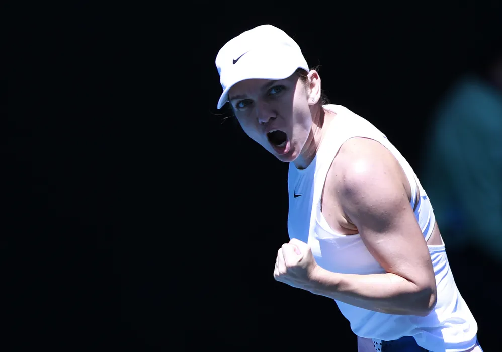 MELBOURNE, Jan. 29, 2020 Simona Halep of Romania celebrates during the women's singles match between Simona Halep of Romania and Anett Kontaveit of Estonia at the Australian Open tennis championship in Melbourne, Australia on Jan. 29, 2020. (Credit Image: © Wang Jingqiang/Xinhua via ZUMA Wire)
