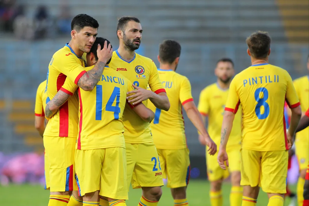 Cristian Sapunaru (S) si Adrian Ropotan (D) il felicita pe Nicolae Stanciu (C), de la nationala Romaniei , dupa marcarea unui gol in timpul meciului amical de fotbal contra eselectionatei RD Congo, disputat pe stadionul Giuseppe Sinigaglia, din Como, Italia, miercuri 25 mai 2016. SEBASTIAN TATARU / MEDIAFAX FOTO