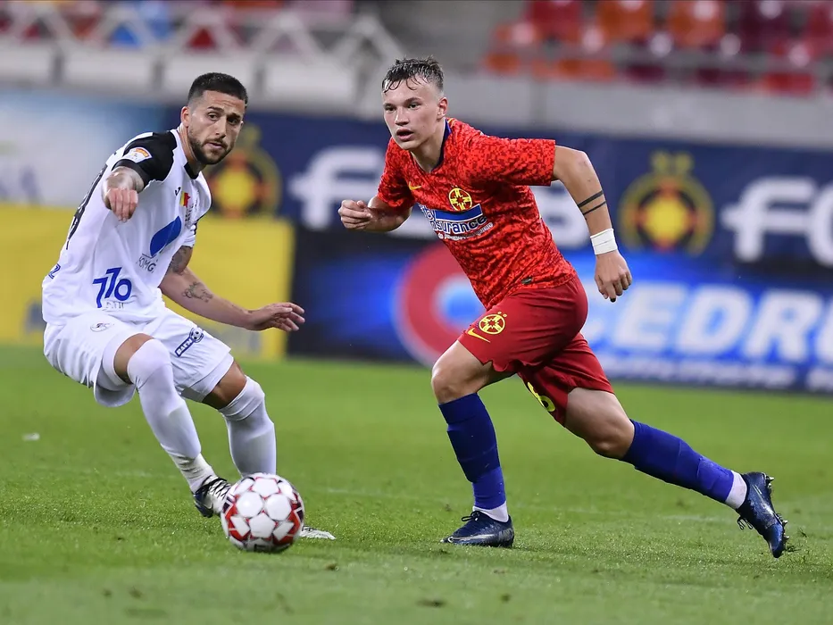 Roberto Romeo si Grigoras Alexandru Pantea in meciul de fotbal dintre FCSB si Gaz Metan Medias, contand pentru play-off-ul Ligii 1 Casa Pariurilor, disputat fara spectatori pe Arena Nationala din Bucuresti, duminica 21 iunie 2020. © FOTO:Razvan Pasarica/SPORT PICTURES