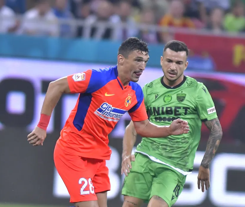 Claudiu Andrei Keseru si Cosmin Gabriel Matei in meciul de fotbal dintre FCSB si Dinamo Bucuresti, contand pentru Liga 1 Casa Pariurilor, desfasurat pe Arena Nationala din Bucuresti, duminica 12 septembrie 2021. © FOTO:Razvan Pasarica/SPORT PICTURES