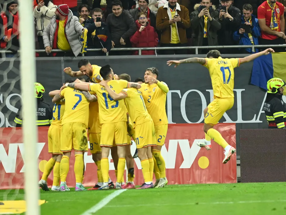 Bucurie a fotbalistilor romani dupa un gol marcat cu Marius Marin, Andrei Ratiu si NicuÈor Bancu in meciul de fotbal dintre Romania si Elvetia, din cadrul preliminariilor Campionatului European 2024, desfasurat pe Arena Nationala, marti 21 noiembrie 2023. Bucuresti *** Romanian footballers rejoice after a goal scored by Marius Marin, Andrei Ratiu and Nicuor Bancu in the football match between Romania and Switzerland, during the European Championship 2024 preliminaries, held at the Arena Nationala, Tuesday 21 November 2023 Bucharest Copyright: xRazvanxPasarica/SPORTxPICTURESx