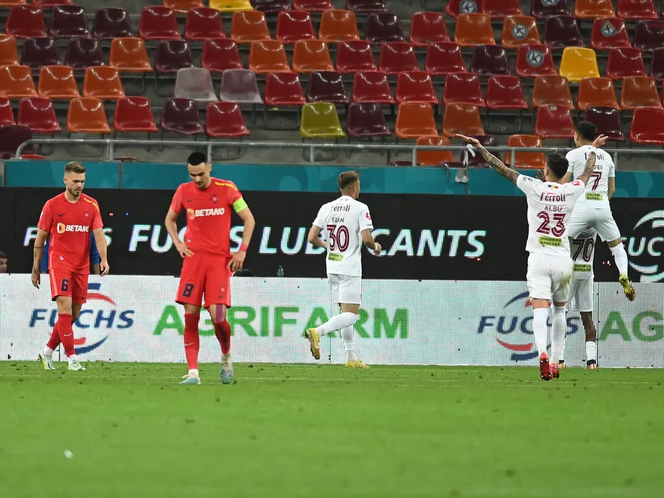 Denis Gratian Harut si Adrian Gheorghe Sut suparati dupa inca un gol incasat in meciul de fotbal dintre FCSB si Rapid Bucuresti, contand pentru Play-off-ul Superligii Superbet, desfasurat pe Arena Nationala din Bucuresti, sambata 27 mai 2023. © FOTO:Razvan Pasarica/SPORT PICTURES