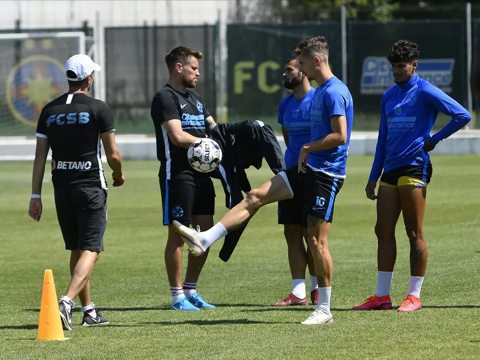 Fotbalistii stelisti Valentin Cretu, Florinel Coman si Florin Tanase, aici alaturi de Mihai Pintilii, la primul antrenament cu Toni Petrea in calitate de pricipal, la Baza de antrenament FCSB din Berceni, miercuri 15 iulie 2020.© FOTO:Razvan Pasarica/SPORT PICTURES