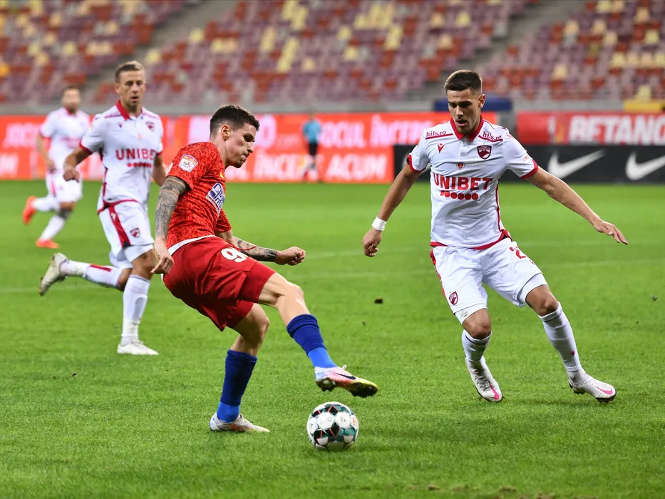 Dennis Man si Ricardo Florin Grigore in meciul de fotbal dintre FCSB si Dinamo Bucuresti, contand pentru Liga 1 Casa Pariurilor, desfasurat fara spectatori pe Arena Nationala din Bucuresti, sambata 3 octombrie 2020. © FOTO:Razvan Pasarica/SPORT PICTURES