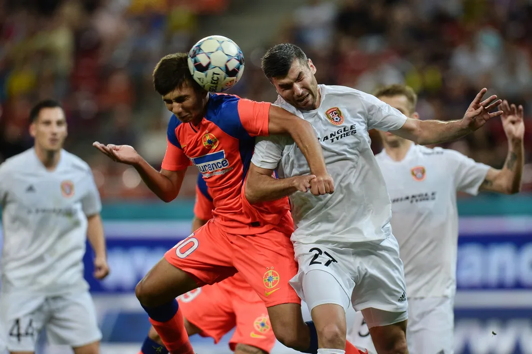 Echipele FCSB (echipament rosu) si Sahtior Karagandy s-au intalnit intr-o partida din prima mansa a ”dublei” din turul doi preliminar al Conference League la fotbal, partida disputata pe Arena Nationala din Bucuresti, joi 22 iulie 2021. EDUARD VINATORU / MEDIAFAX FOTO