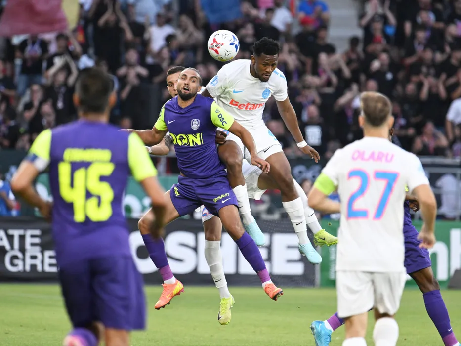 Ionut Darius Cercel, Virgiliu Postolachi si Siyabonga Ngezana in meciul dintre FCSB si CFR Cluj, Supercupa Romaniei, desfasurat pe Stadionul Steaua-Ghencea din Bucuresti, sambata 5 iulie 2025. © FOTO:Razvan Pasarica/SPORT PICTURES