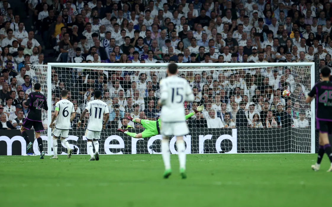 08 May 2024, Spain, Madrid: Bayern Munich's Alphonso Davies (not pictured) scores their first goal of the game during the UEFA Champions League semi-final, second leg match between Real Madrid and Bayern Munich at the Santiago Bernabeu. Photo: Isabel Infantes/PA Wire/dpa