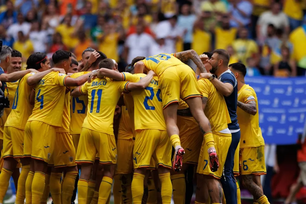 Team of Romania celebrate after winning game during UEFA Euro 2024 game between national teams of Romania and Ukraine at Allianz Arena, Munich, Germany (Maciej Rogowski),Image: 883144405, License: Royalty-free, Restrictions: , Model Release: no