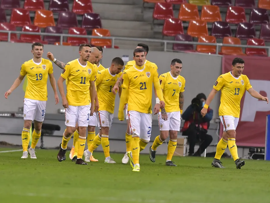 Bucurie a fotbalistilor romani dupa un gol marcat cu Florin Tanase , Nicusor Bancu, Razvan Marin, Valentin Mihaila , Nicolae Stanciu si Claudiu Keseru in meciul de fotbal dintre Romania si Macedonia de Nord, din cadrul Preliminariilor Campionatului Mondial 2022, desfasurat fara spectatori pe Arena Nationala din Bucuresti, joi 25 martie 2021. © FOTO:Razvan Pasarica/SPORT PICTURES