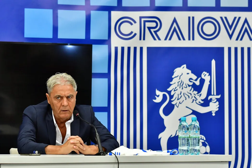Sorin Cartu participa la conferinta de presa in cadrul careia a fost prezentat noul antrenor al echipei de fotbal Universitatea Craiova la stadionul Ion Oblemenco , marti 27 iulie 2021 . REMUS BADEA / MEDIAFAX FOTO