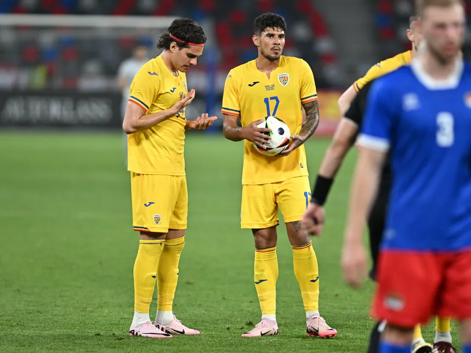 Fotbalistii romani Ianis Hagi si Florinel Coman in meciul amical de fotbal dintre Romania si Liechtenstein, desfasurat pe Stadionul Steaua din Bucuresti, vineri 7 iunie 2024. © FOTO:Razvan Pasarica/SPORT PICTURES