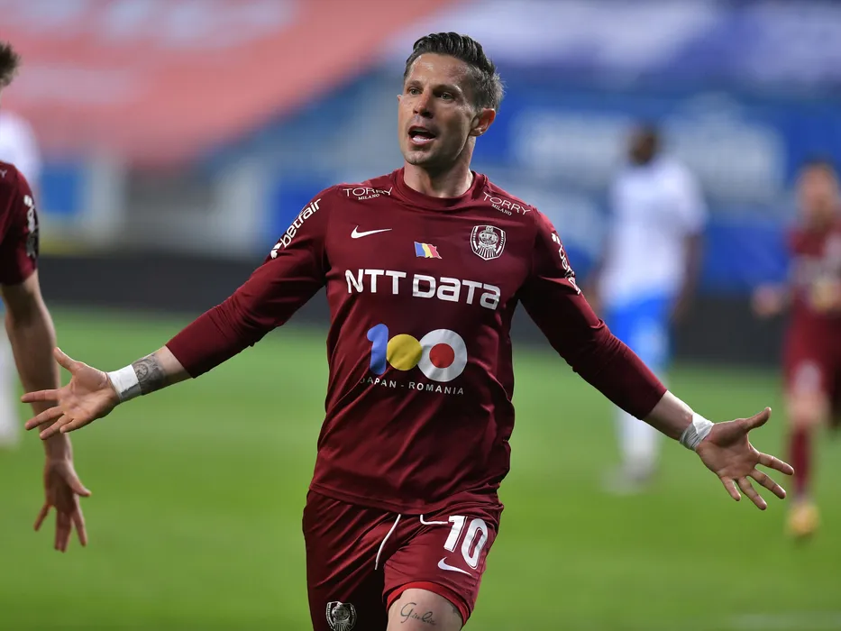 Ciprian Ioan Deac se bucura dupa un gol marcat in meciul de fotbal dintre Universitatea Craiova si CFR Cluj, contand pentru Play-off-ul Ligii 1 Casa Pariurilor, desfasurat fara spectatori pe Stadionul Ion Oblemenco din Craiova, sambata 15 mai 2021. © FOTO:Razvan Pasarica/SPORT PICTURES