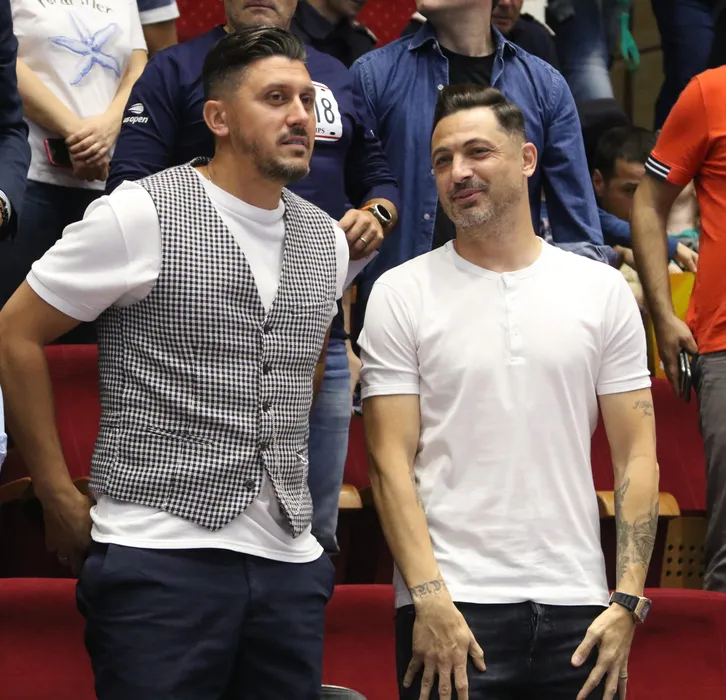 Ciprian Marica si Mirel Radoi urmaresc partida dintre CSM Bucuresti (echipament negru-alb) si echipa poloneza Perla Lublin, partida disputata in grupa B de calificare la turneul final al Ligii Campionilor la handbal feminin, sambata 19 octombrie 2019, in Sala Polivalenta din Bucuresti. GEORGE FLUSTER / MEDIAFAX FOTO