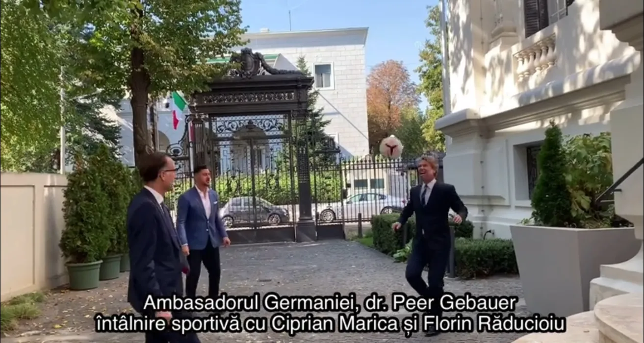 Ciprian Marica și Florin Răducioiu, pase cu ambasadorul Germaniei la București înainte de meciul „tricolorilor”. Ce au discutat despre Ianis Hagi | VIDEO