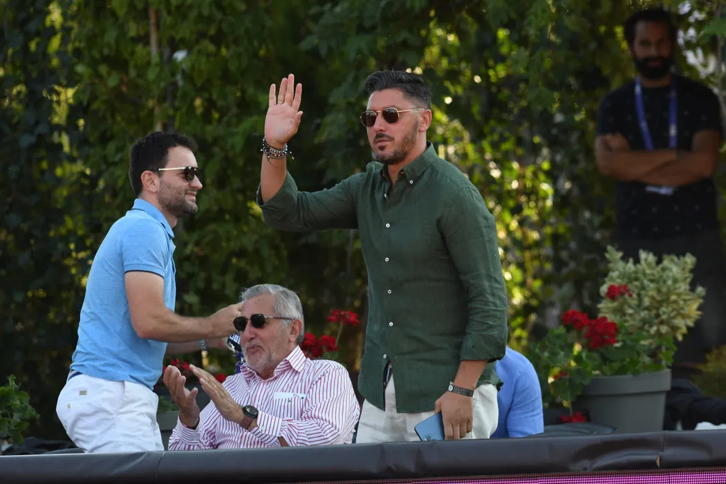 Ilie Nastase si Ciprian Marica urmaresc meciul de tenis dintre Mayar Sherif si Andrea Petkovic din finala turneului WTA Winners Open 2021, desfasurata la Cluj-Napoca, duminica, 8 august 2021. FLAVIU BUBOI / MEDIAFAX FOTO